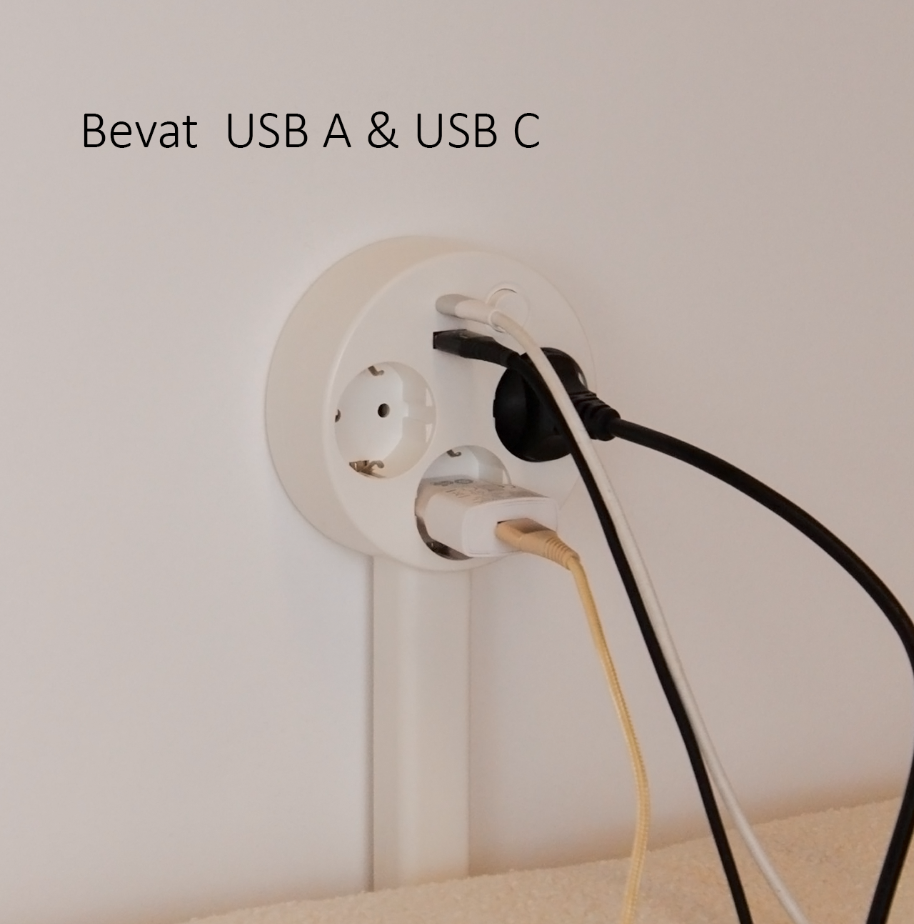 Superhandig in de woonkamer. We laden nu telefoon en tablet op via USB-A en USB-C, terwijl de lamp en tv gewoon in de geaarde stopcontacten blijven zitten. Geen gekruip meer over de grond om achter de bank bij het stopcontact te komen.